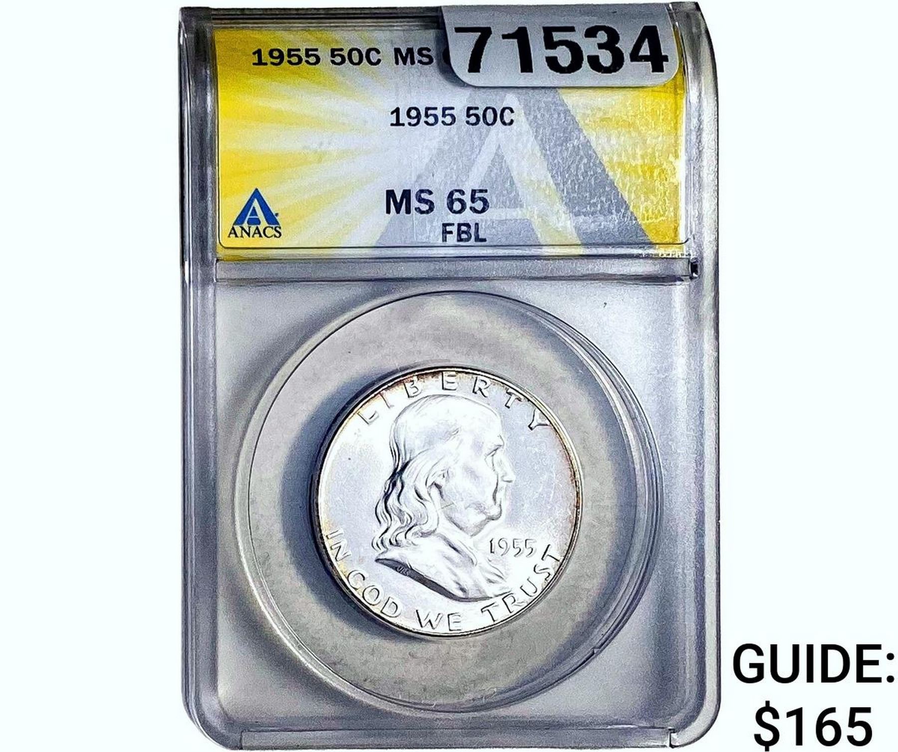 1955 Franklin Half Dollar ANACS MS65 FBL