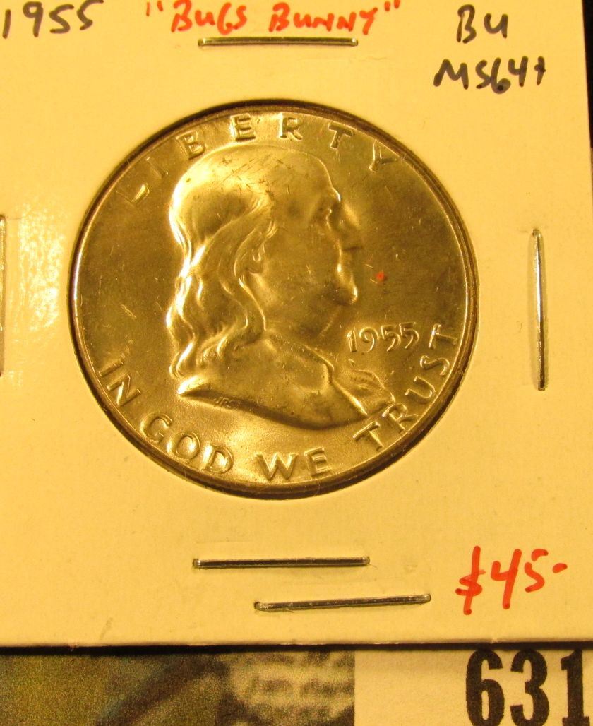 1955 Franklin Half Dollar, Bugs Bunny variety, BU MS64+, value $45
