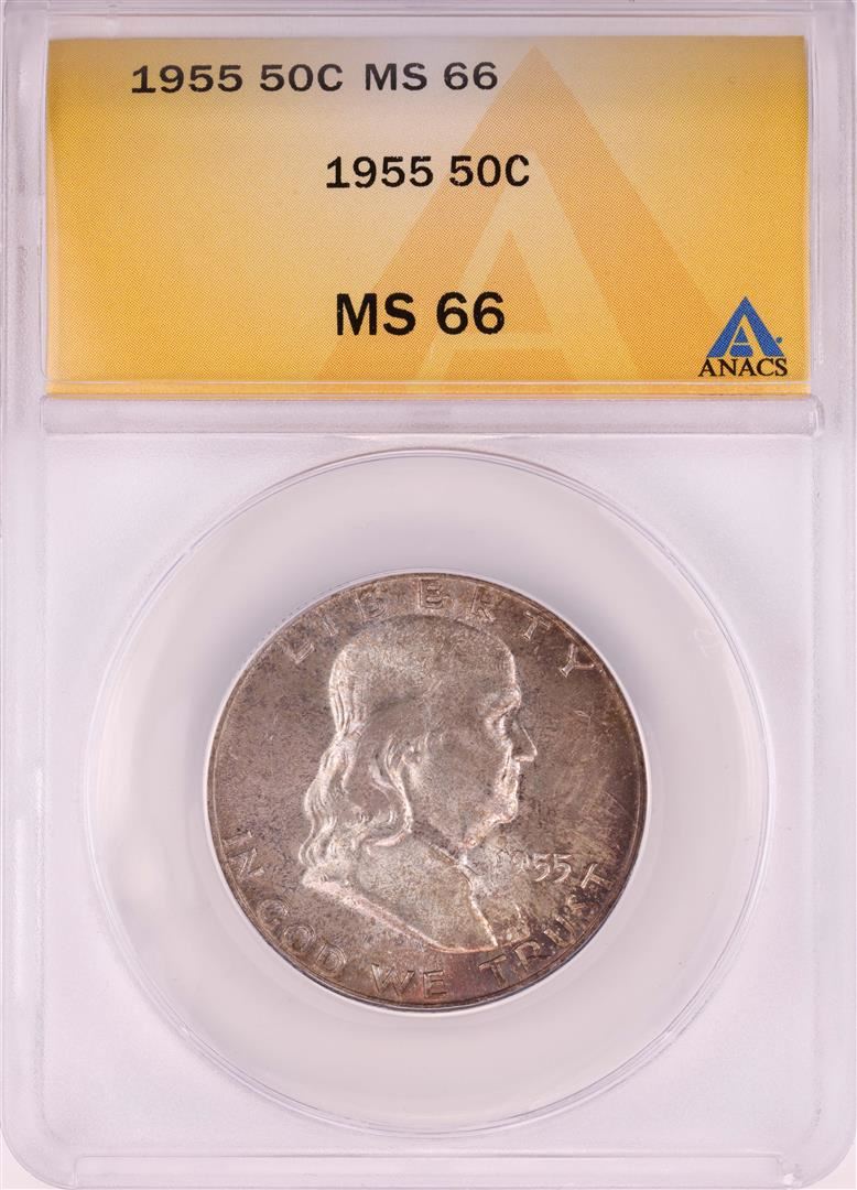 One 1955 Franklin Half Dollar Coin ANACS MS66. ANACS Certified.