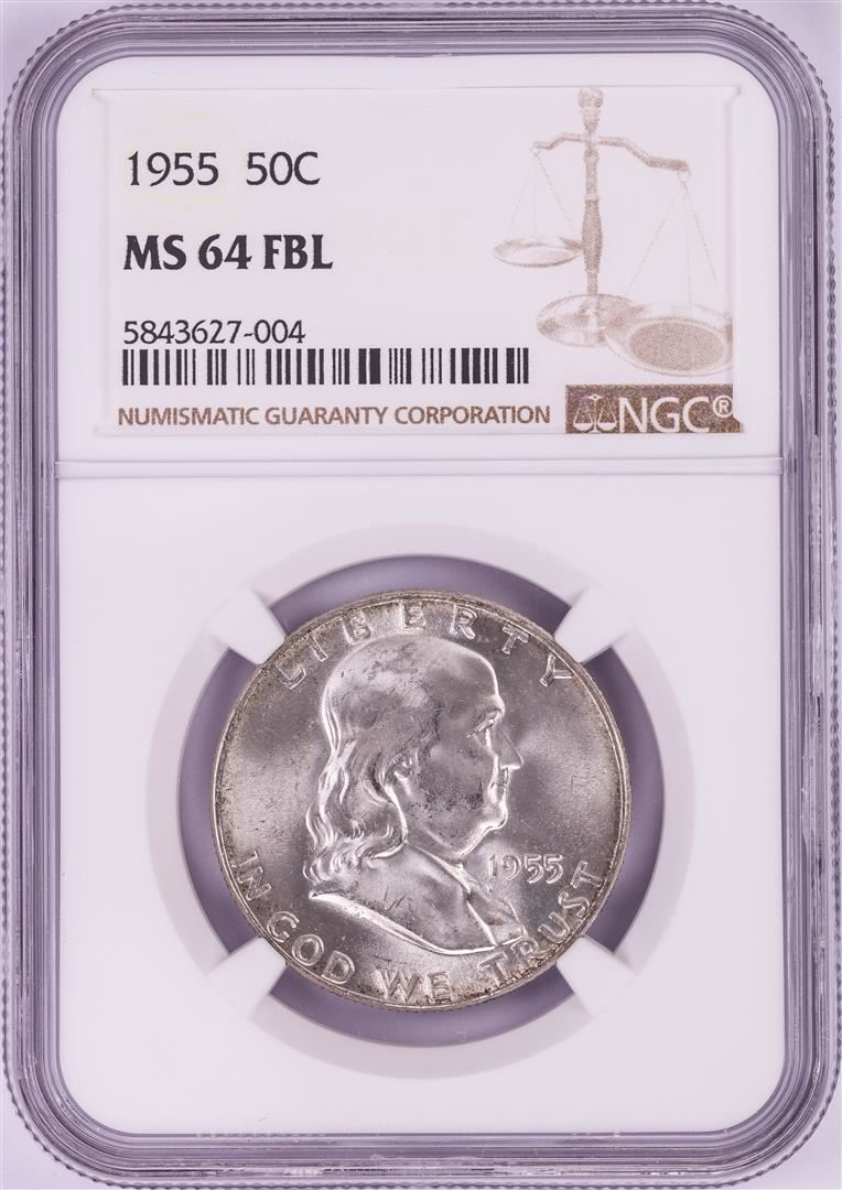 One 1955 Franklin Half Dollar Coin NGC MS64FBL. NGC Certified.