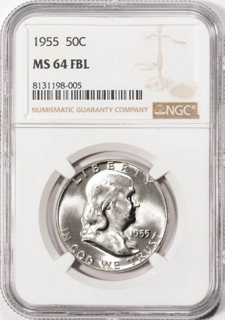 One 1955 Franklin Half Dollar Coin NGC MS64FBL. NGC Certified.