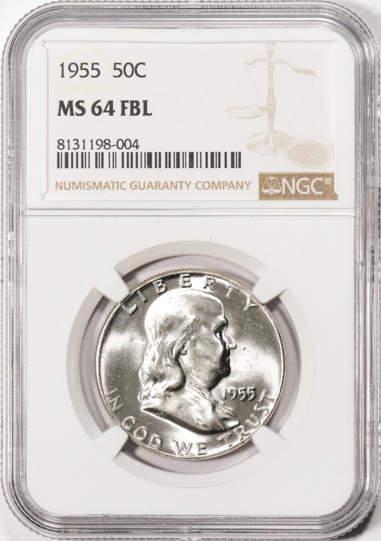 One 1955 Franklin Half Dollar Coin NGC MS64FBL. NGC Certified.