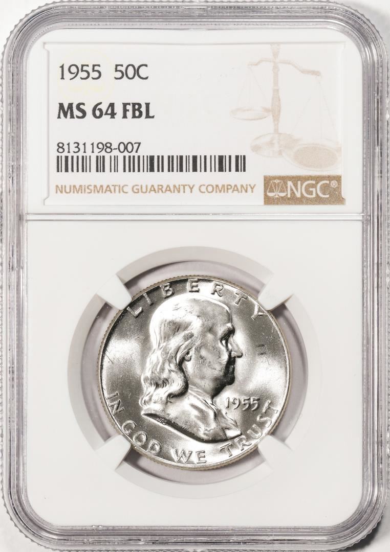 One 1955 Franklin Half Dollar Coin NGC MS64FBL. NGC Certified.