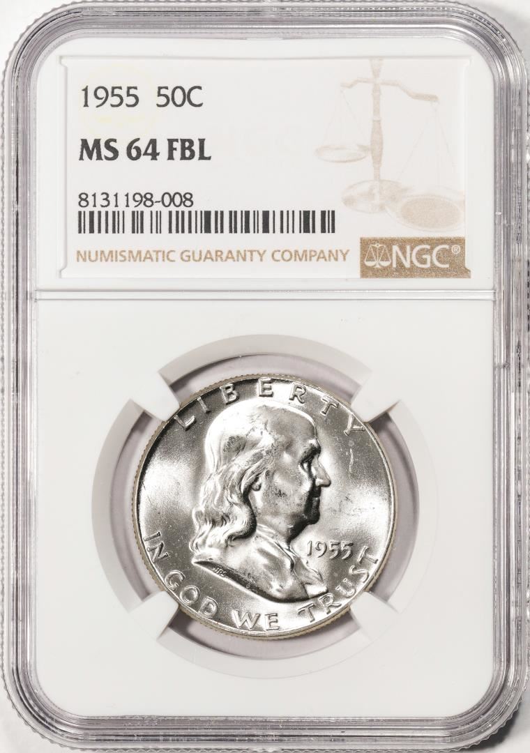 One 1955 Franklin Half Dollar Coin NGC MS64FBL. NGC Certified.