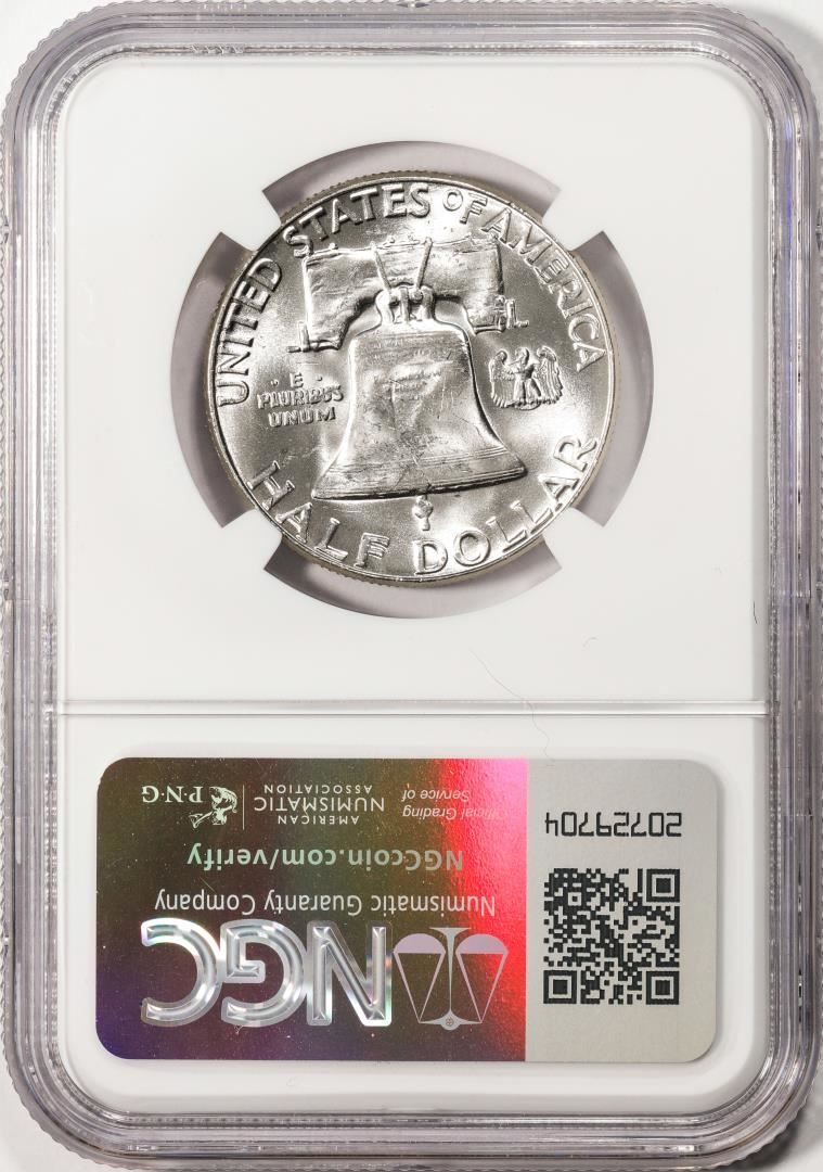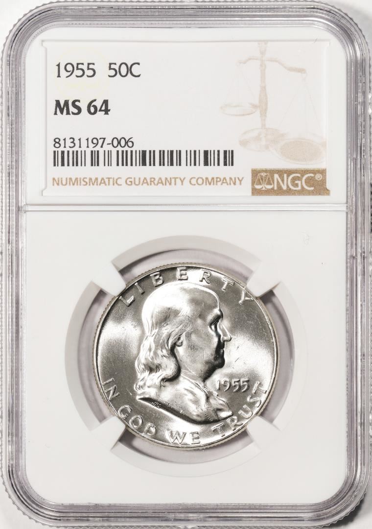One 1955 Franklin Half Dollar Coin NGC MS64. NGC Certified.