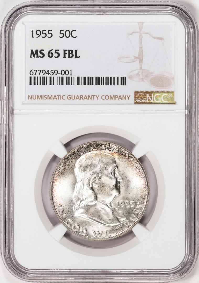 One 1955 Franklin Half Dollar Coin NGC MS65FBL. NGC Certified.