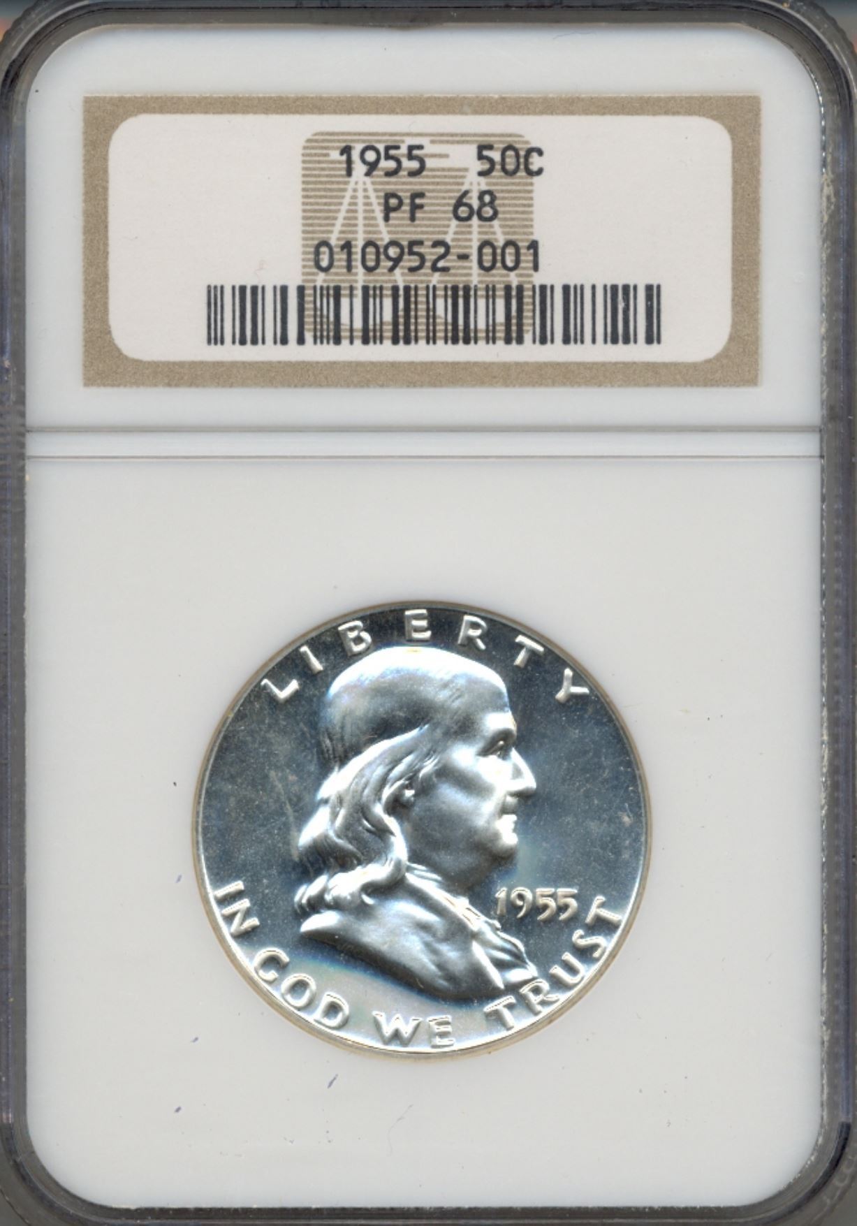 One 1955 Franklin Half Dollar Coin NGC PF68.