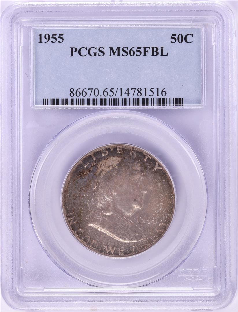 One 1955 Franklin Half Dollar Coin PCGS MS65FBL.