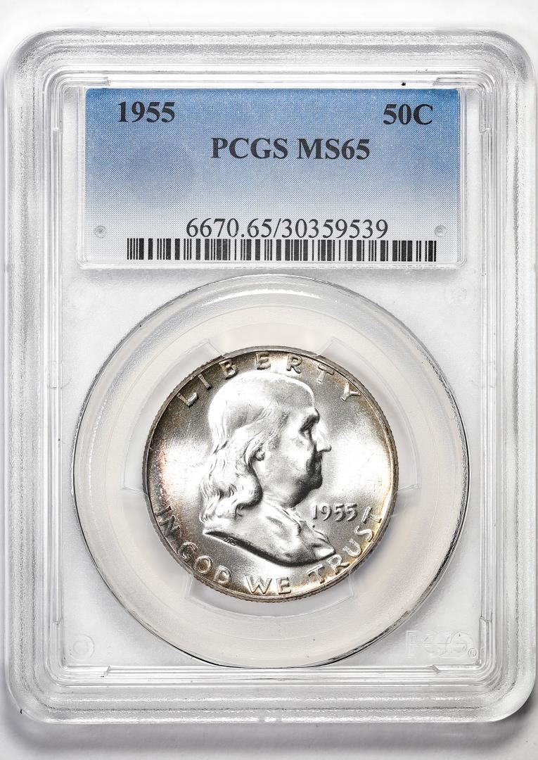 One 1955 Franklin Half Dollar Coin PCGS MS65. PCGS Graded.