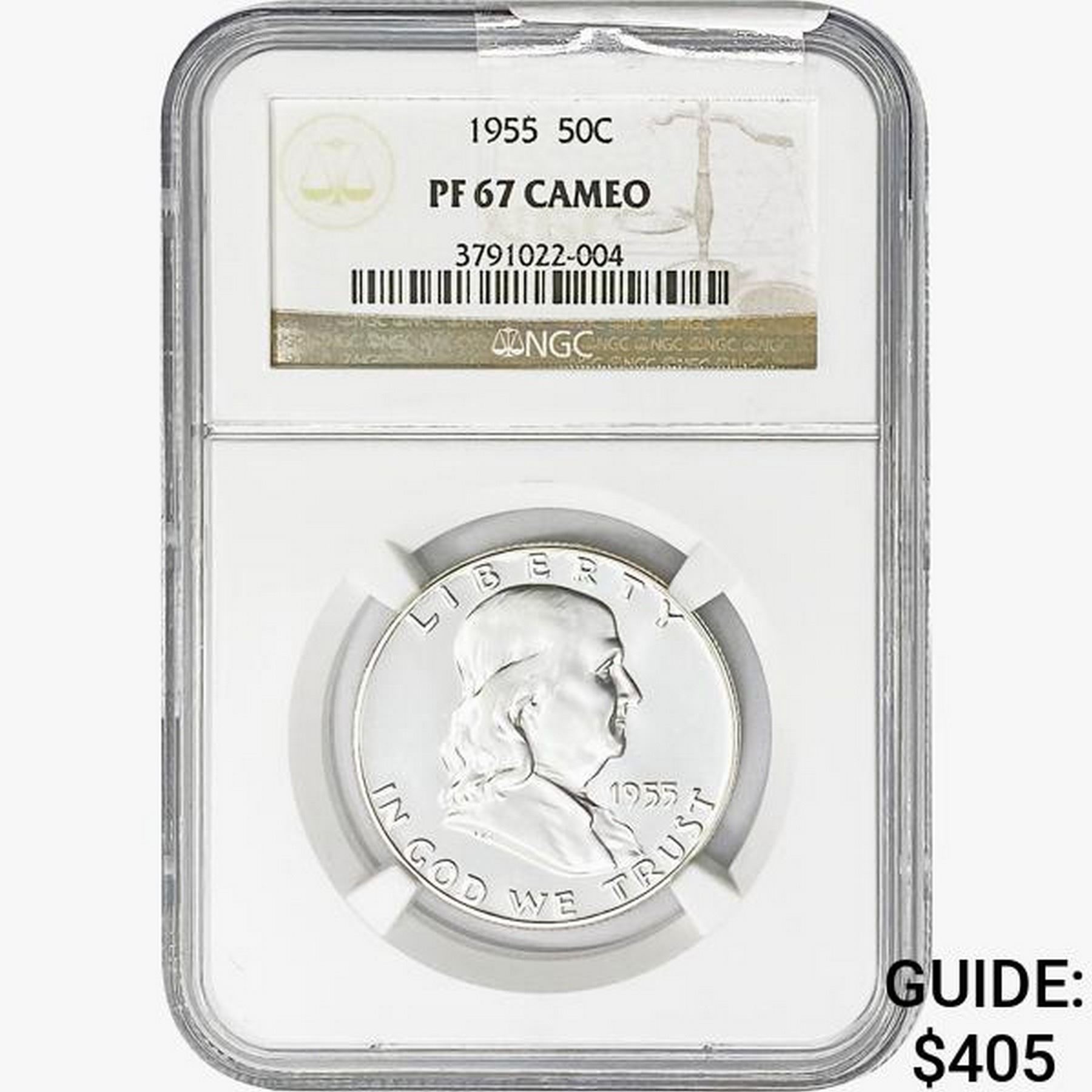1955 Franklin Half Dollar NGC PF67 Cameo