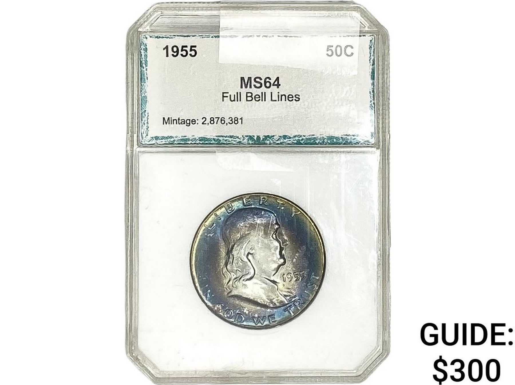 1955 Franklin Half Dollar PCI MS64 Full Bell LInes