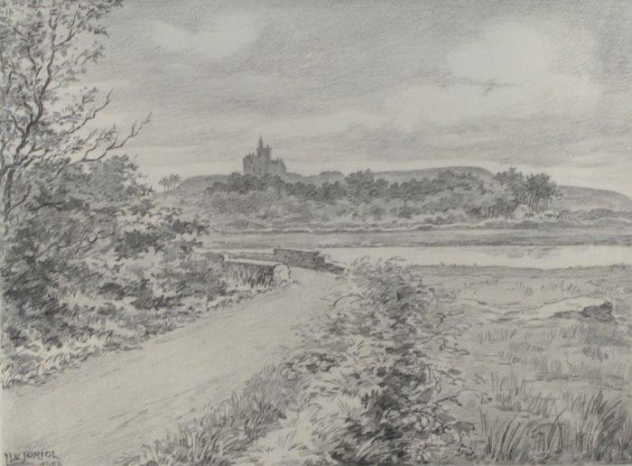 A pair of uniformly framed pencil drawings by L. Le Priol. The first of Classiebawn Castle from Blunduff Road and the second of Benwiskin and the lake (Cliffoney). Each signed and dated lower left and titled on reverse. (2 items)