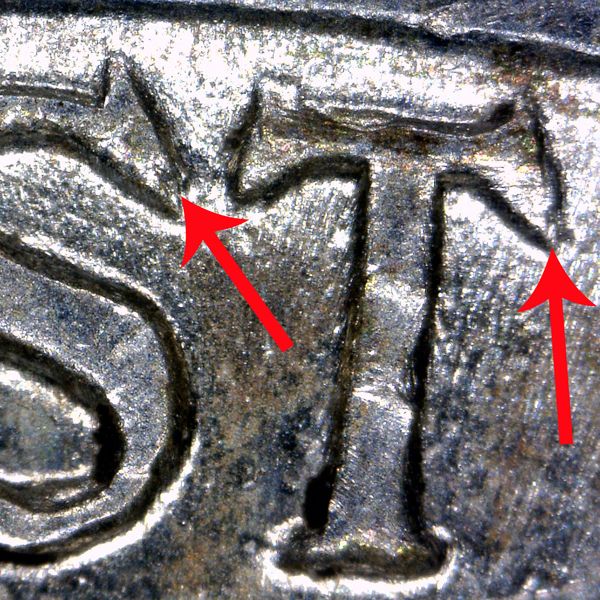 Excellent hi-grade piece; double die obverse ST and struck thru grease