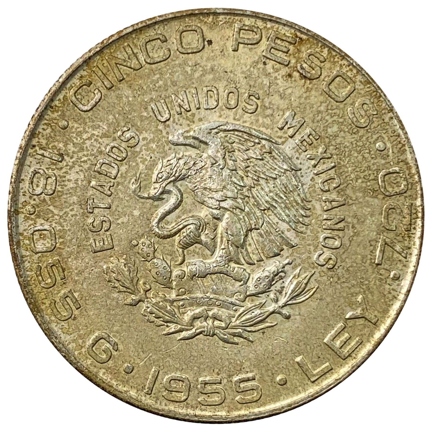1955-M Mexico Silver 5 Peso CLOSELY UNCIRCULATED