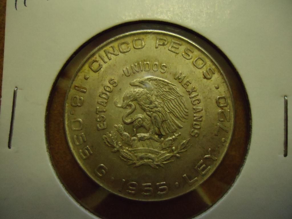 1955 MEXICO 5 PESOS .4178 OZ. ASW