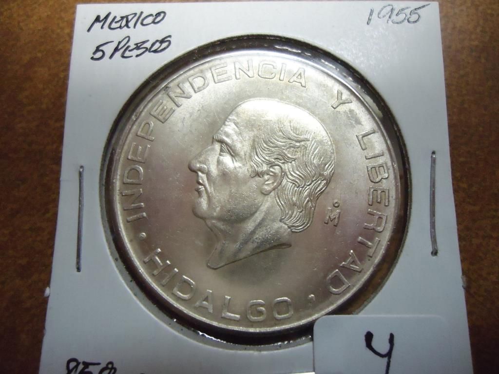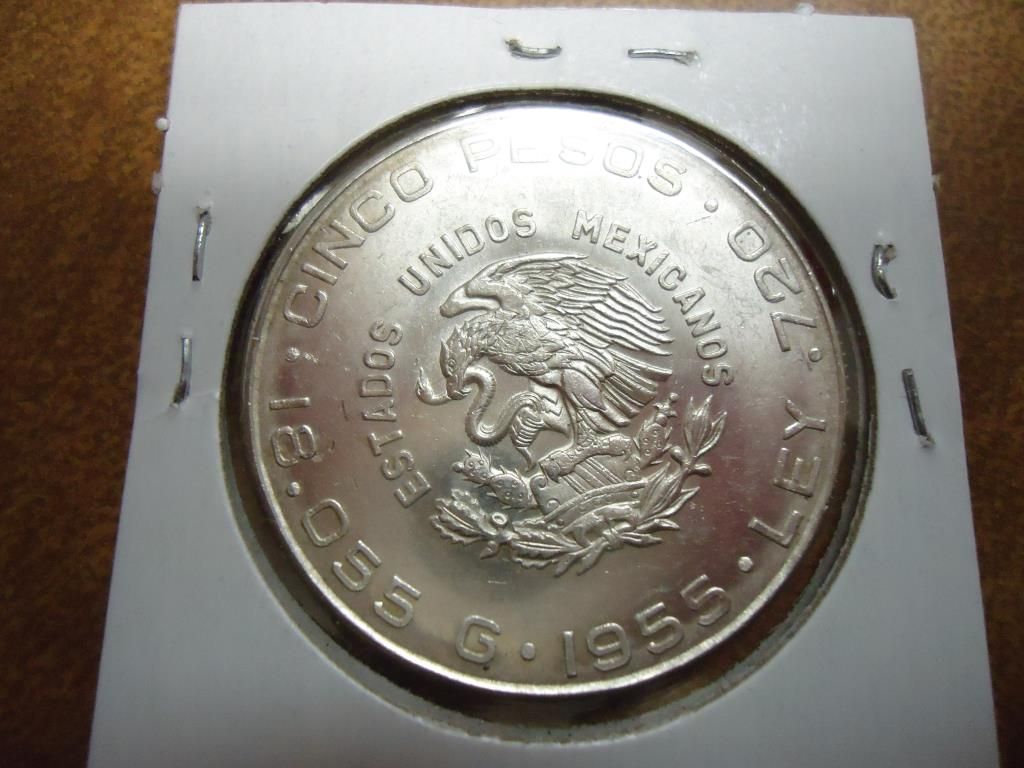 1955 MEXICO SILVER 5 PESOS .4178 OZ. ASW