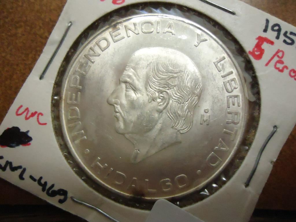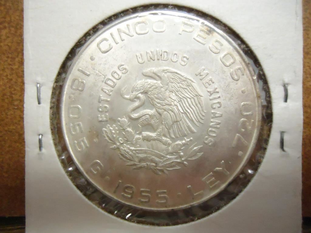 1955 MEXICO SILVER 5 PESOS .4178 OZ. ASW