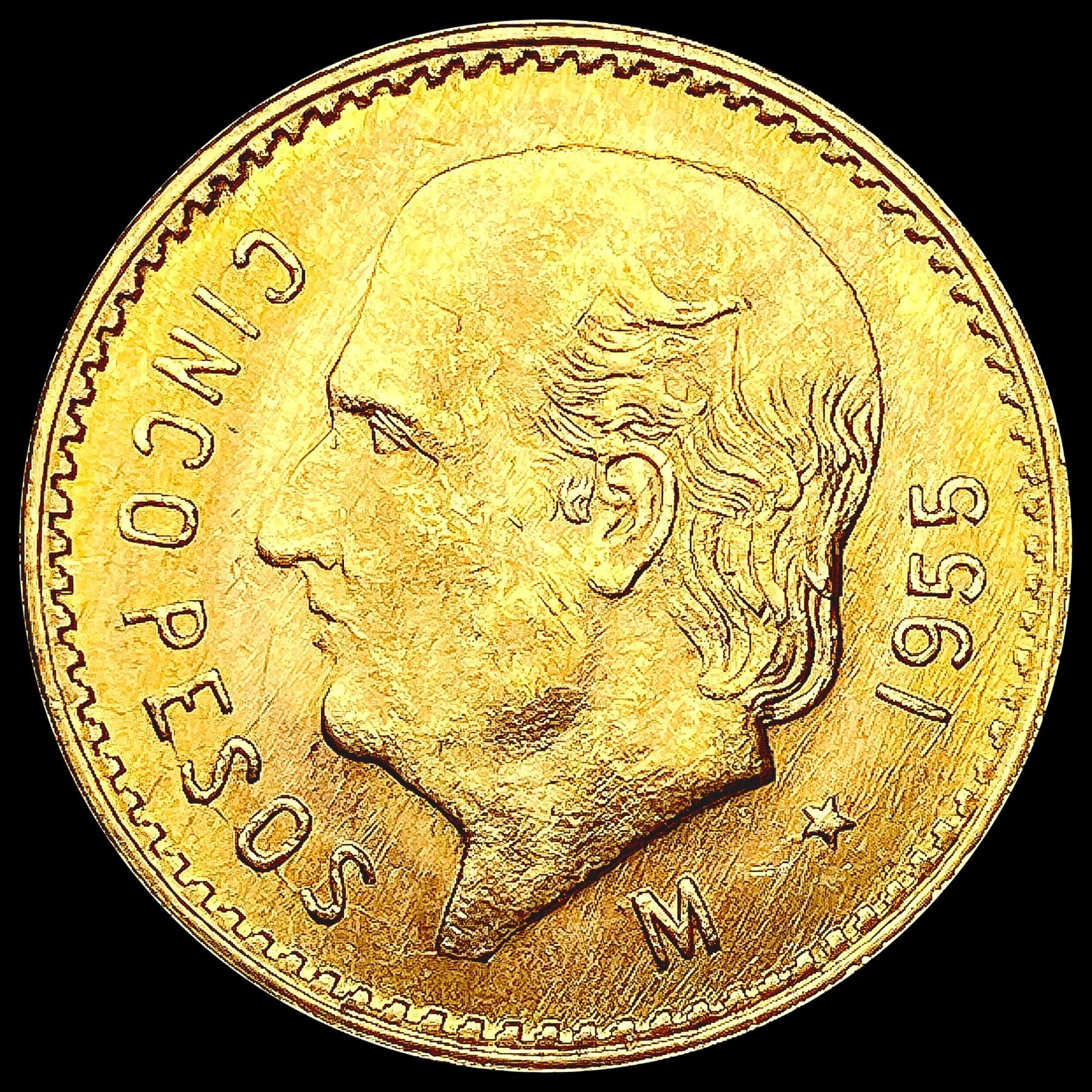1955 Mexico .1206oz Gold 5 Pesos CHOICE BU