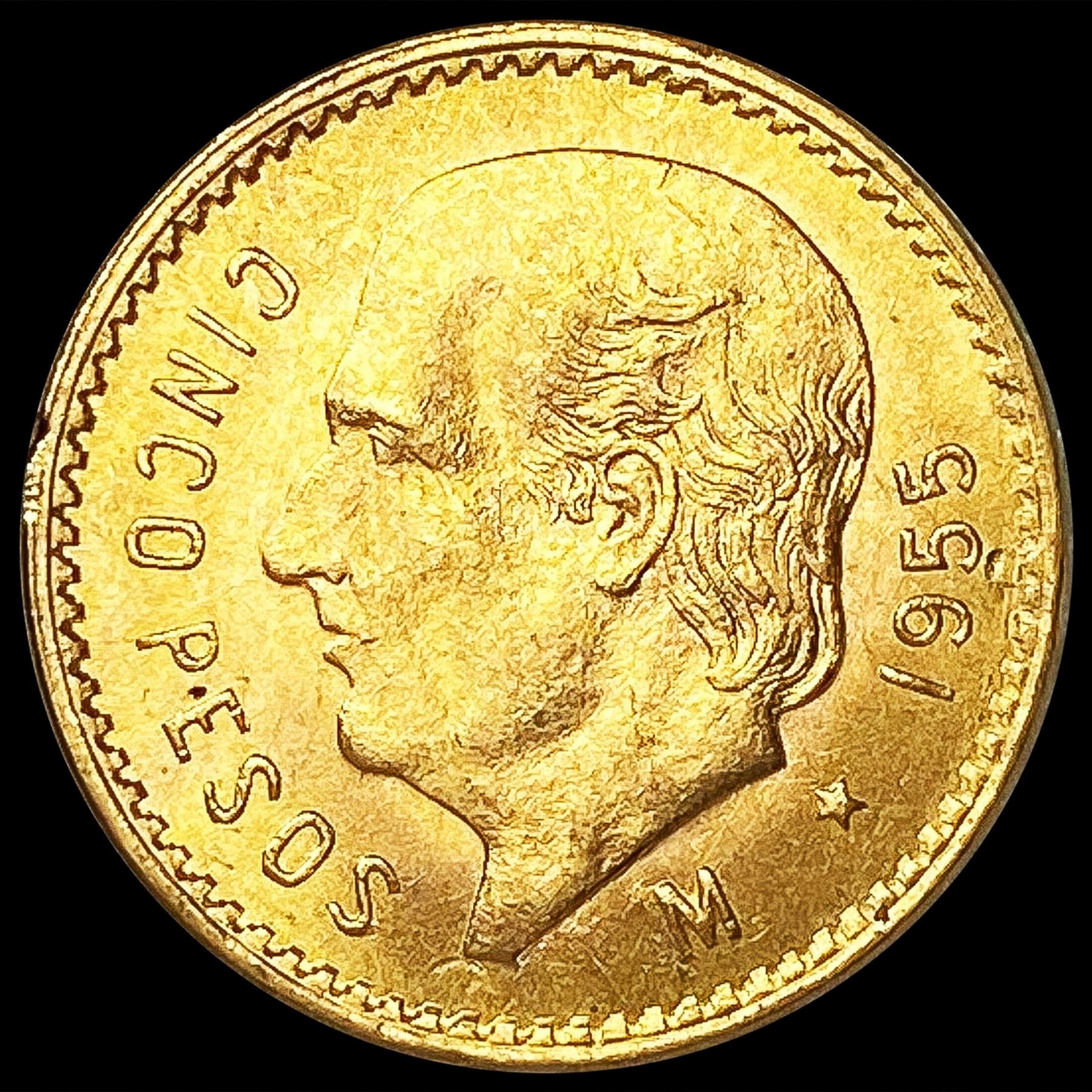 1955 Mexico .1206oz Gold 5 Pesos UNCIRCULATED