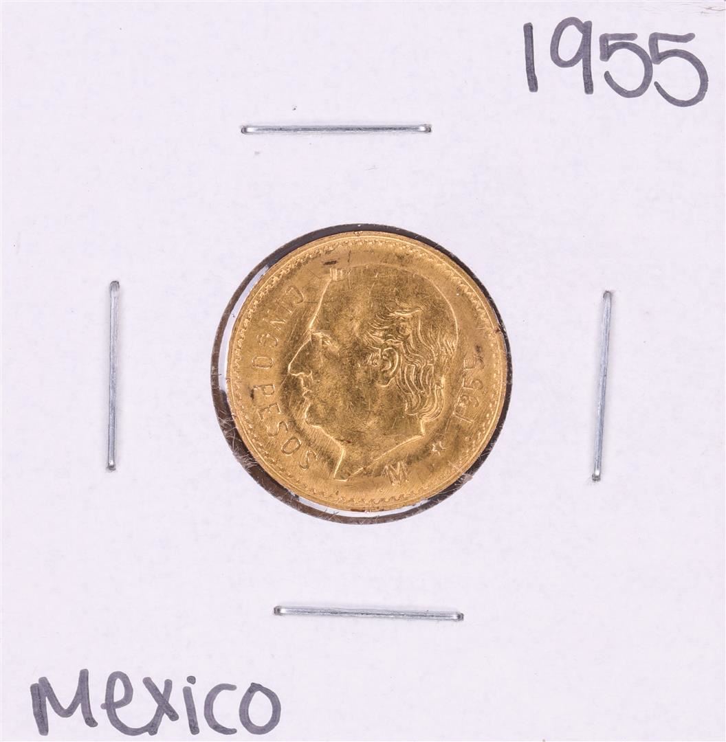 One 1955 Mexico Cinco Pesos Gold Coin.