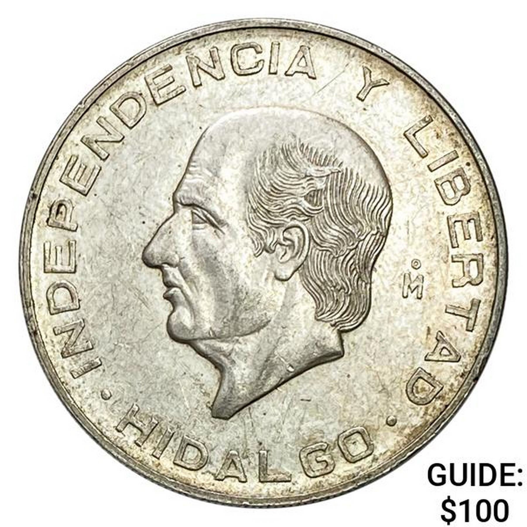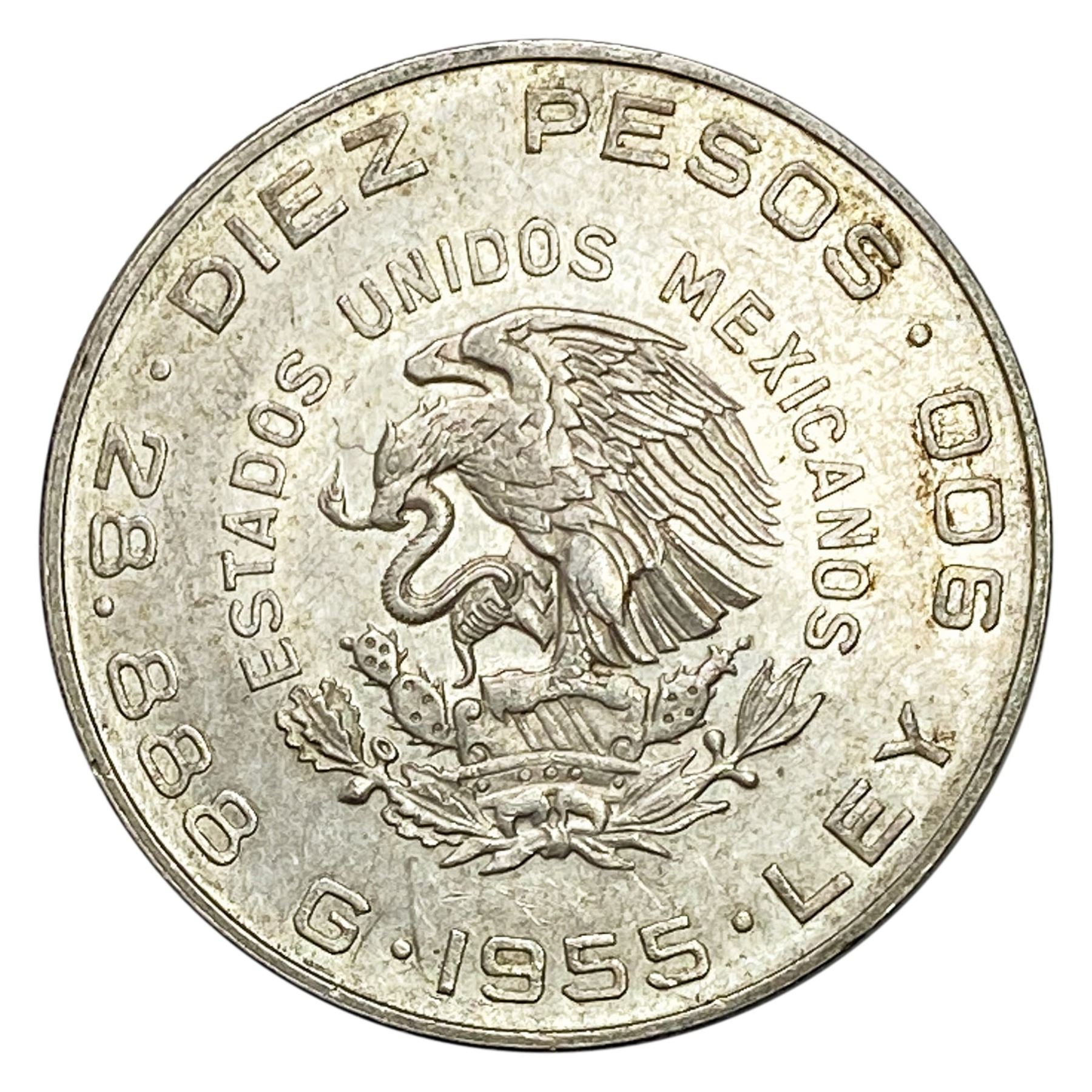 1955 Mexico Silver 10 Peso Hildalgo AU