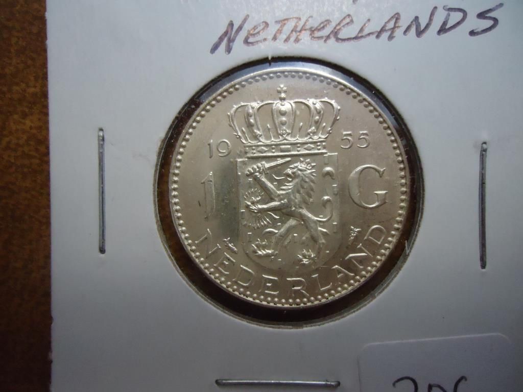 1955 NETHERLANDS SILVER GULDEN UNC .1505 OZ. ASW