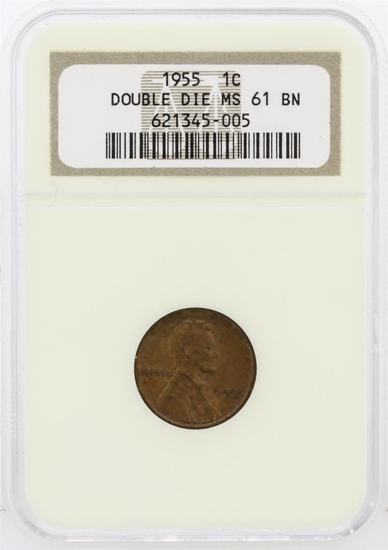 One 1955 NGC MS61 BN Doubled Die One Cent. NGC Certified.