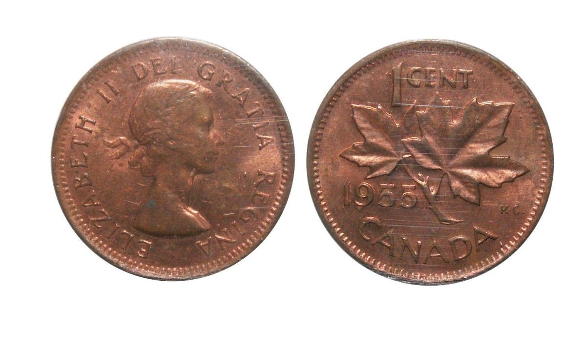 1955 NSF 1¢ ICCS MS64 Red. A gorgeous Premium Choice example, with orange colours at the rims and a bold strike on both sides. The nicest example ever seen by TCNC. Rare. Tied for finest.