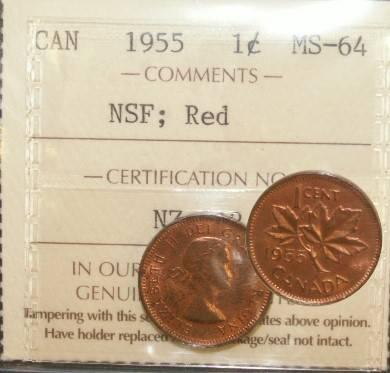 1955 NSF 1¢ ICCS MS64 Red, tied for finest graded. Extremely scarce! Worth a premium bid