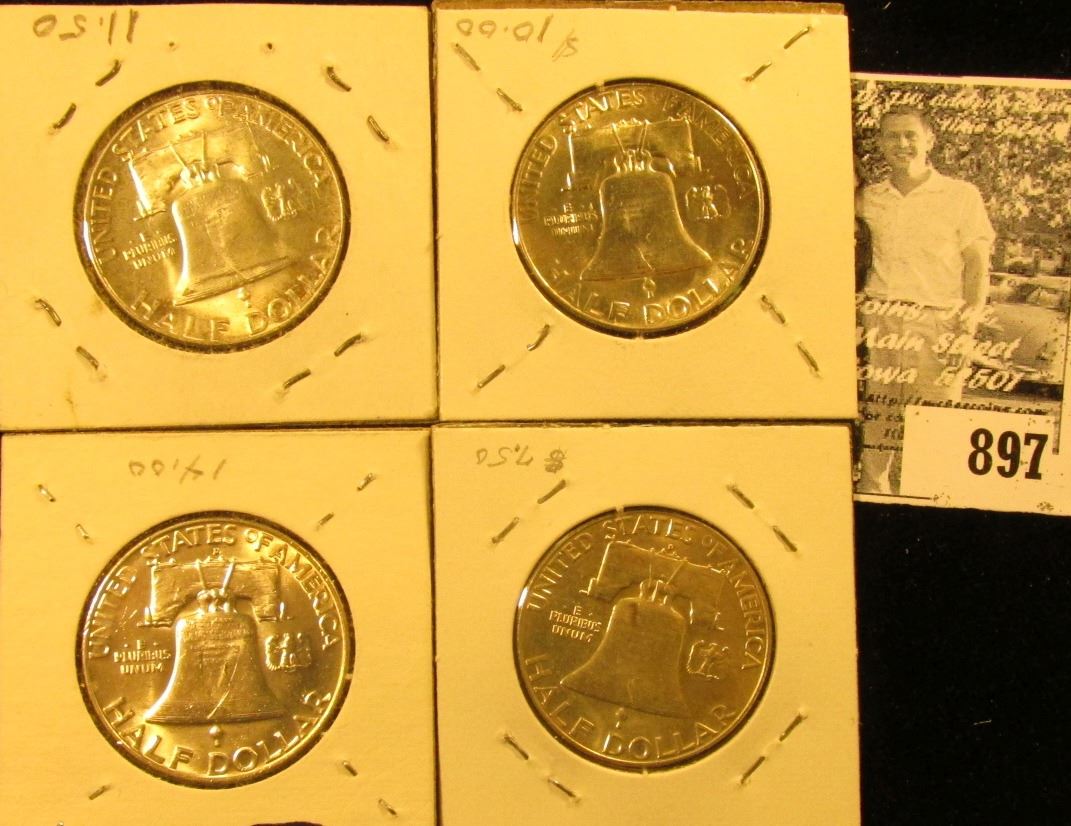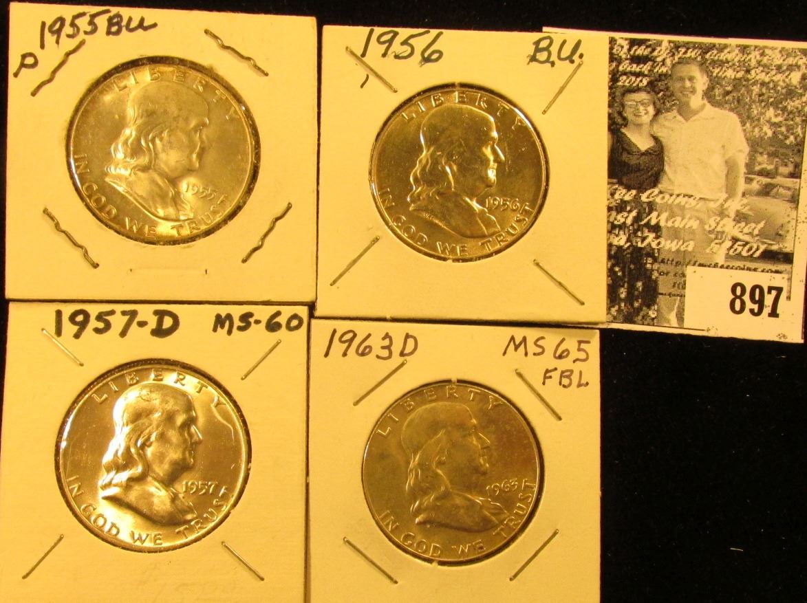 1955 P, 56 P, 57 D, & 63 D Franklin Half Dollars, all BU.