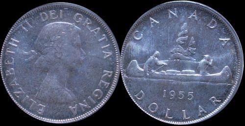 1955 PCGS MS65 Light golden tone over full lustre. A very nice and popular Queen Elizabeth II silver dollar in Gem condition. Should realize over estimate.