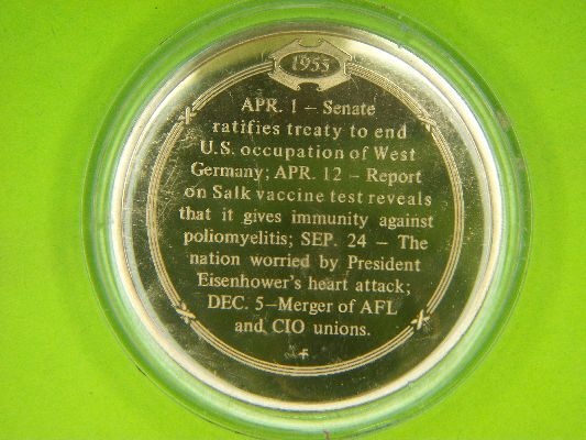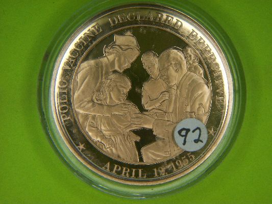 1955 POLIO VACCINE DECLARED EFFECTIVE 1.25 OUNCE PURE BRONZE