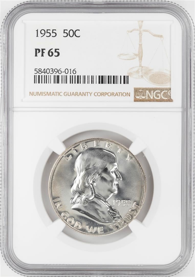 One 1955 Proof Franklin Half Dollar Coin NGC PF65. NGC Certified.