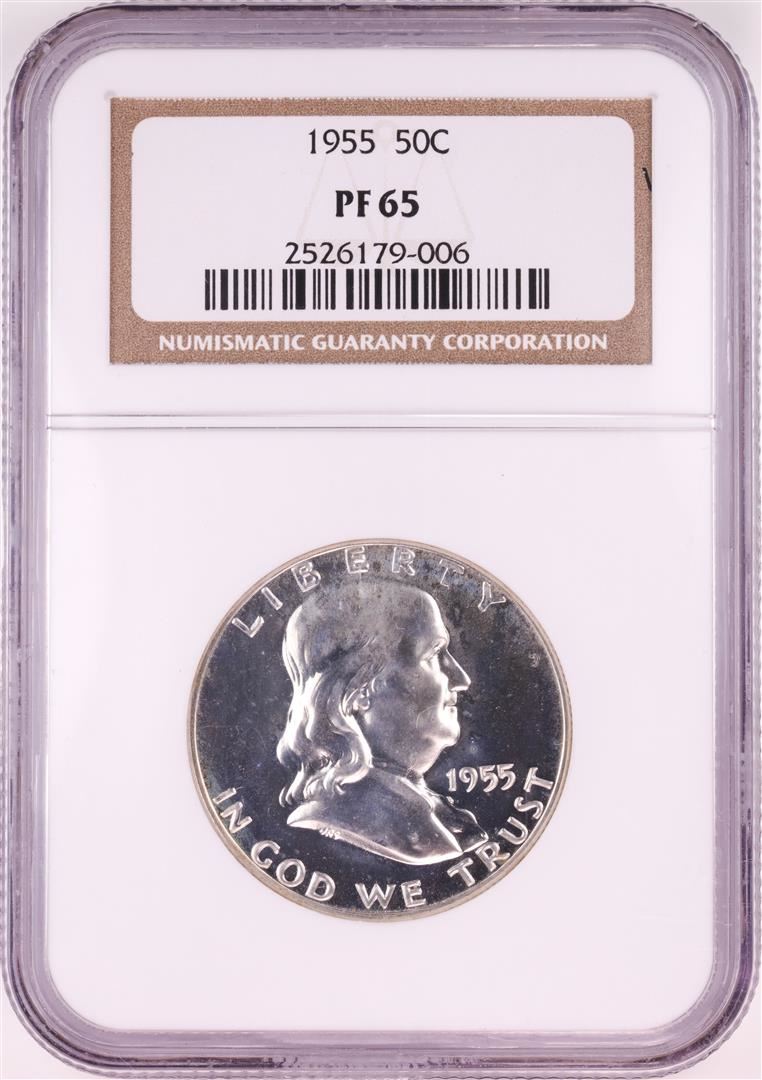 One 1955 Proof Franklin Half Dollar Coin NGC PF65. NGC Certified.