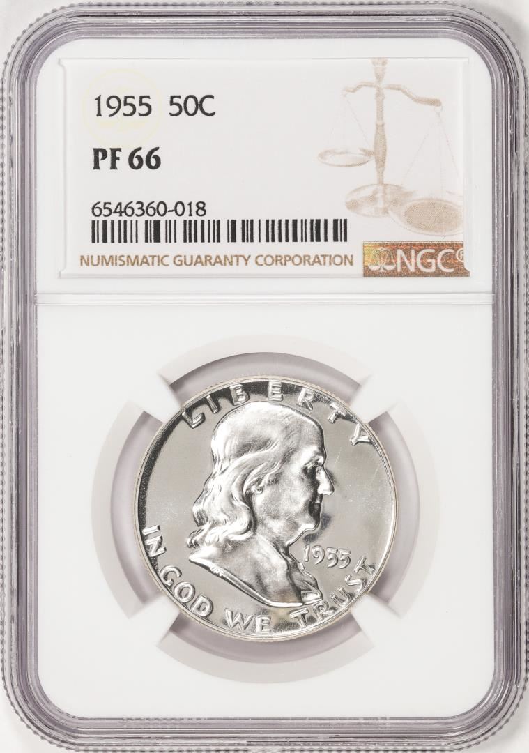 One 1955 Proof Franklin Half Dollar Coin NGC PF66. NGC Certified.