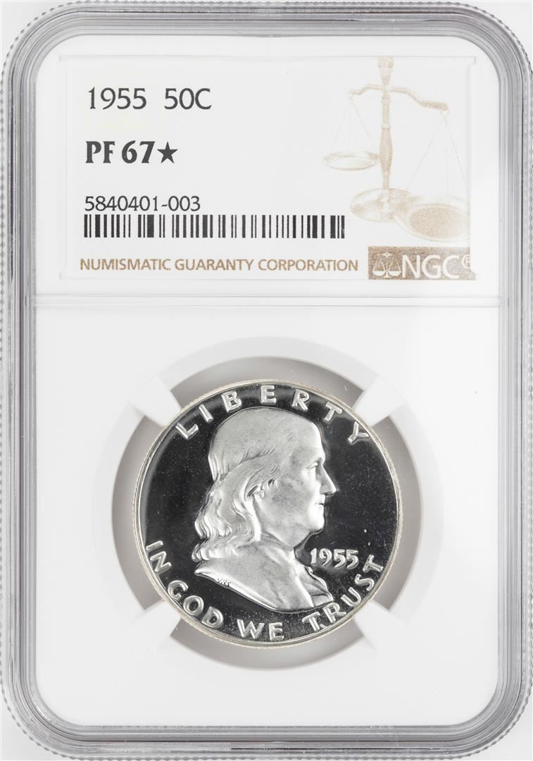 One 1955 Proof Franklin Half Dollar Coin NGC PF67* Star. NGC Certified.