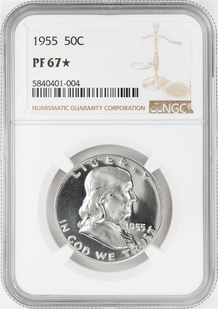 One 1955 Proof Franklin Half Dollar Coin NGC PF67* Star. NGC Certified.