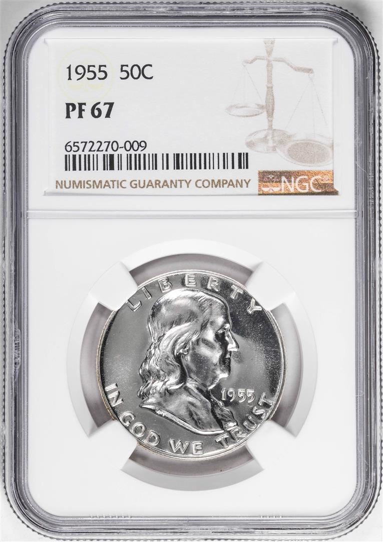One 1955 Proof Franklin Half Dollar Coin NGC PF67. NGC Certified.