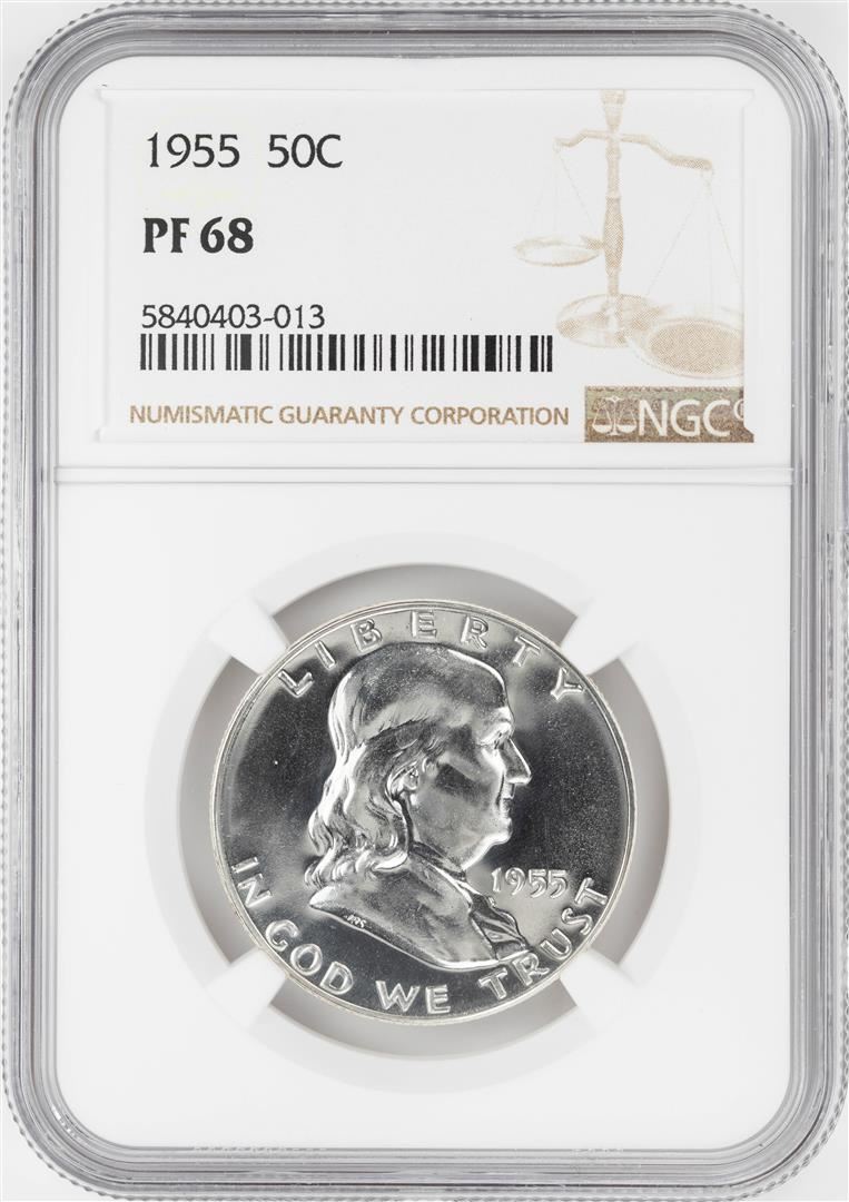 One 1955 Proof Franklin Half Dollar Coin NGC PF68. NGC Certified.