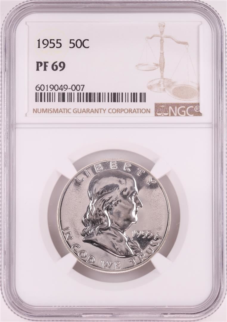 One 1955 Proof Franklin Half Dollar Coin NGC PF69. NGC Certified.