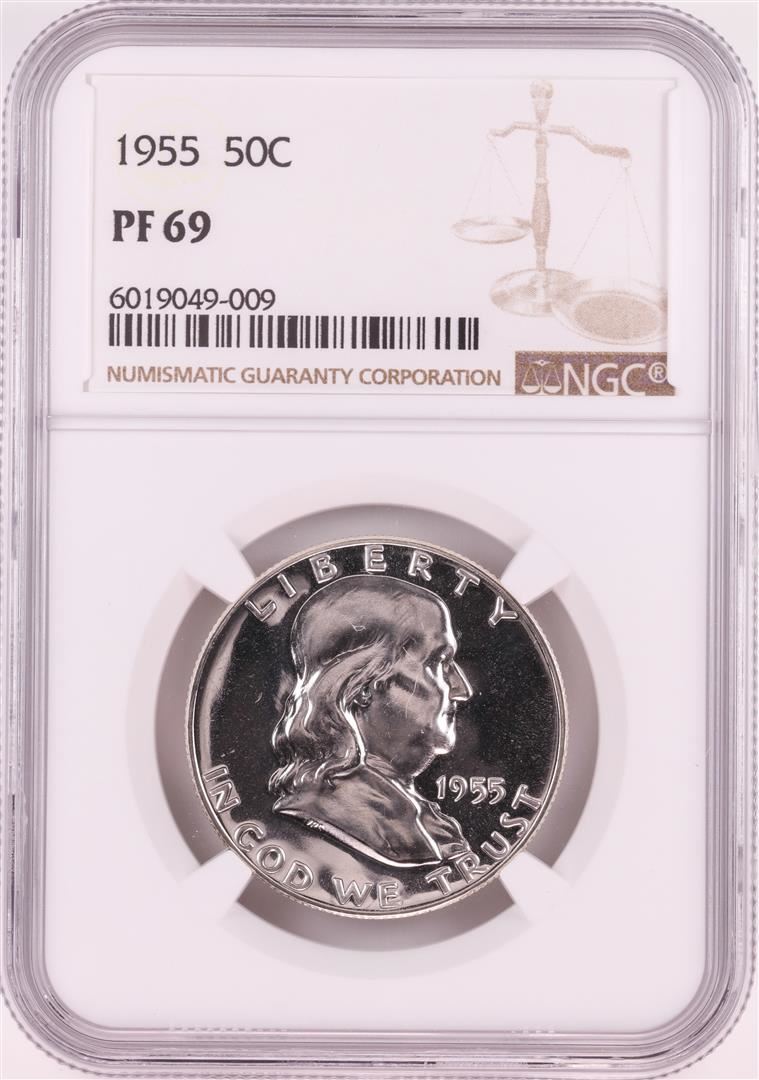 One 1955 Proof Franklin Half Dollar Coin NGC PF69. NGC Certified.