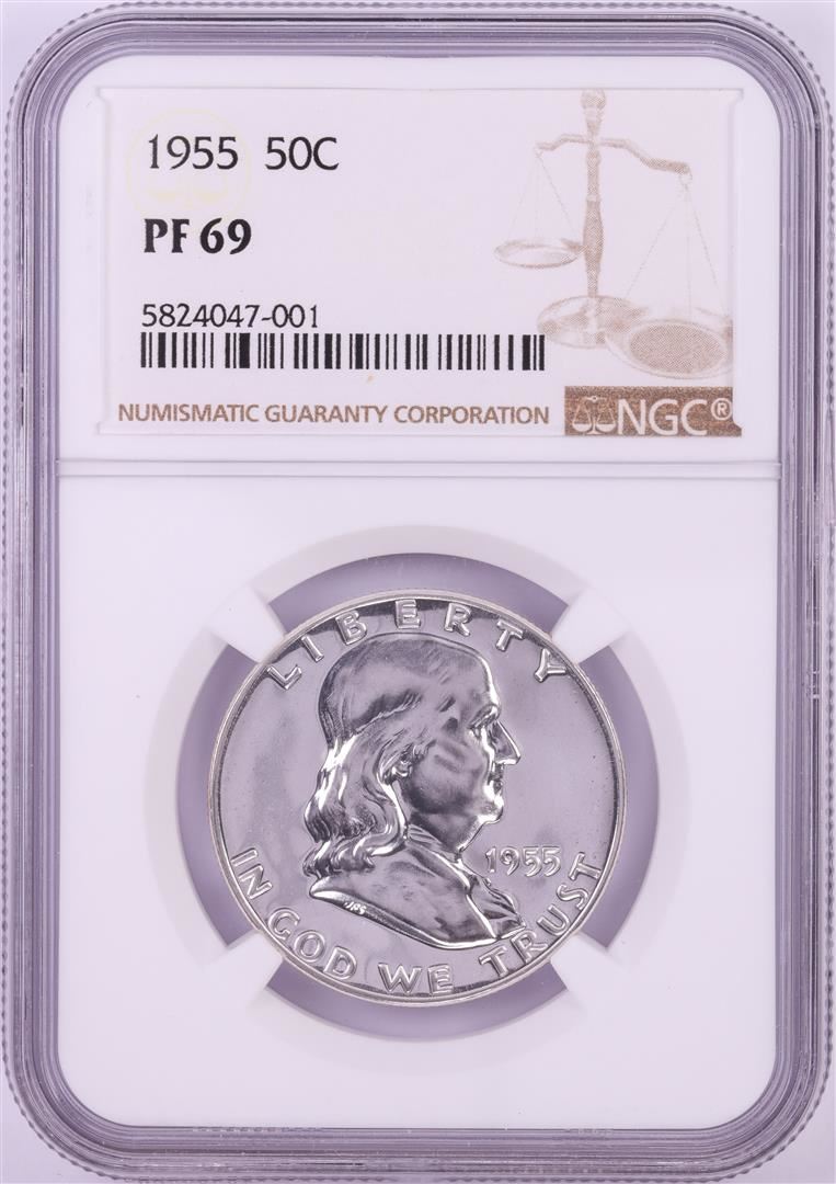 One 1955 Proof Franklin Half Dollar Coin NGC PF69. NGC Certified.