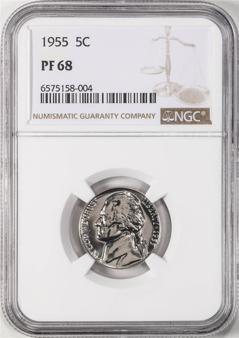One 1955 Proof Jefferson Nickel Coin NGC PF68. NGC Certified.