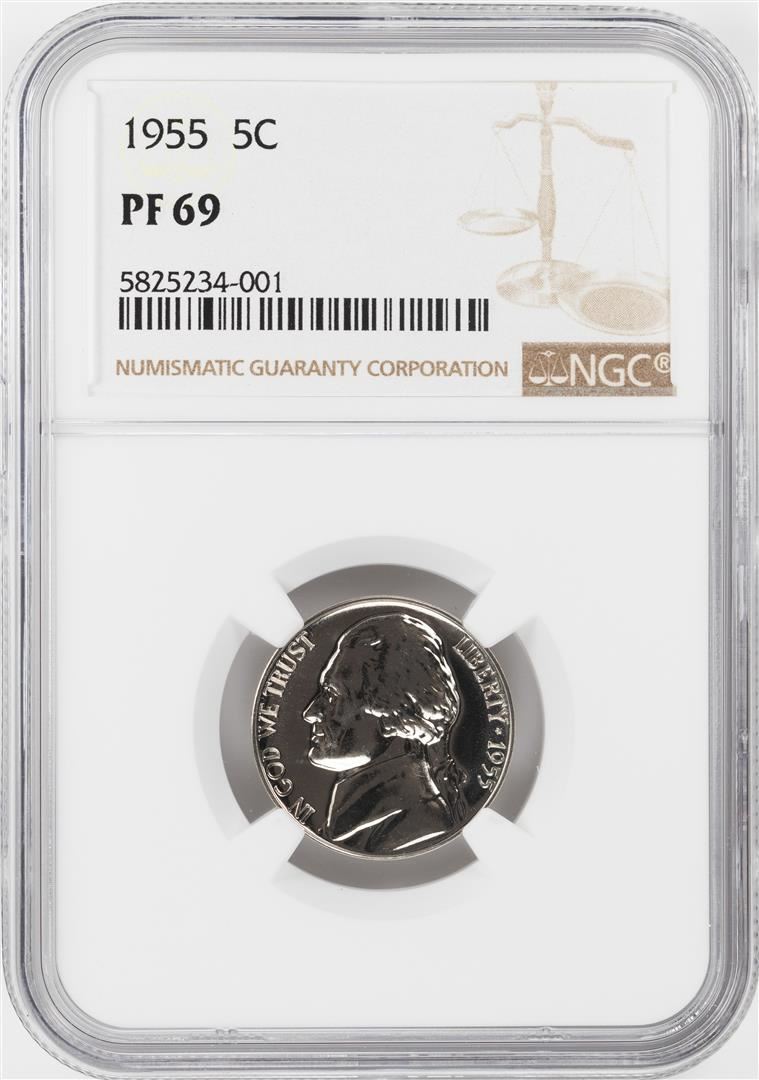 One 1955 Proof Jefferson Nickel Coin NGC PF69. NGC Certified.