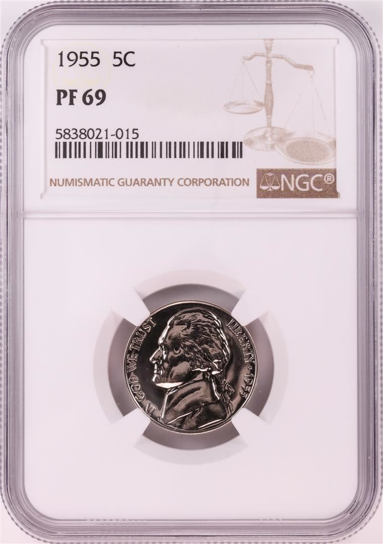 One 1955 Proof Jefferson Nickel Coin NGC PF69. NGC Certified.