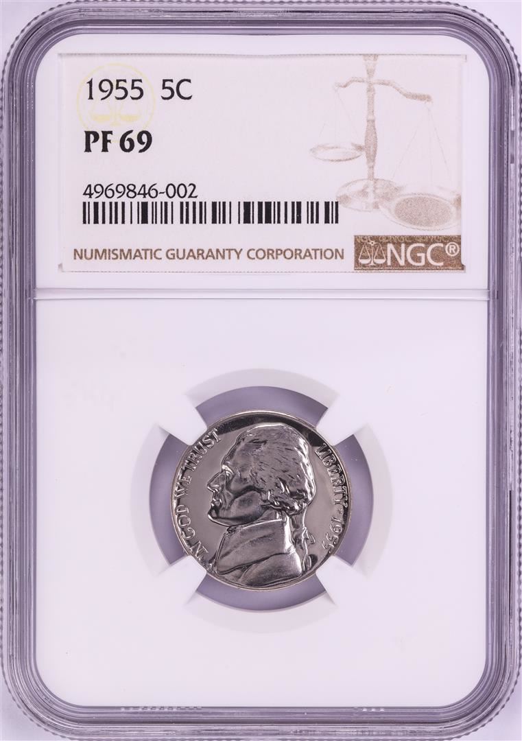 One 1955 Proof Jefferson Nickel Coin NGC PF69. NGC Certified.