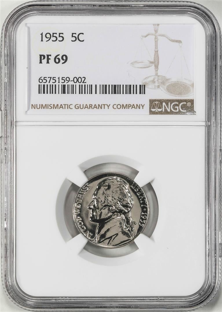One 1955 Proof Jefferson Nickel Coin NGC PF69. NGC Certified.