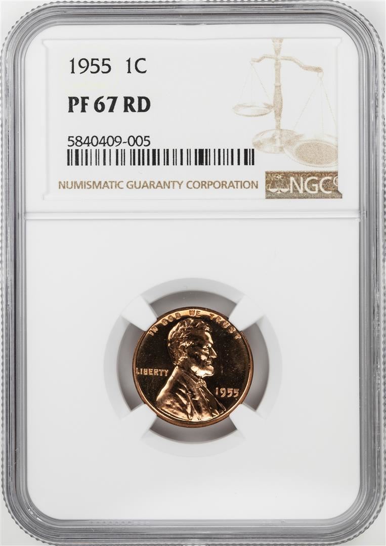 One 1955 Proof Lincoln Wheat Cent Coin NGC PF67RD. NGC Certified.