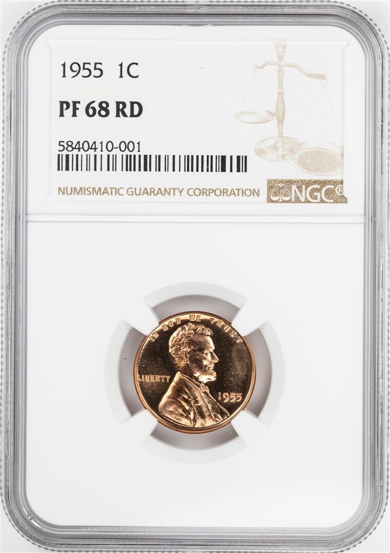 One 1955 Proof Lincoln Wheat Cent Coin NGC PF68RD. NGC Certified.