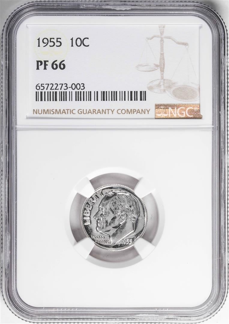 One 1955 Proof Roosevelt Dime Coin NGC PF66. NGC Certified.